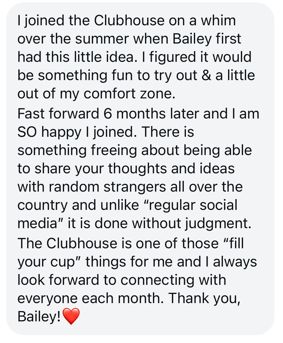 You can upgrade to a monthly or annual membership below. Once you join, send me a DM on Instagram (@heybailey___) so I can add you to our Clubhouse list!